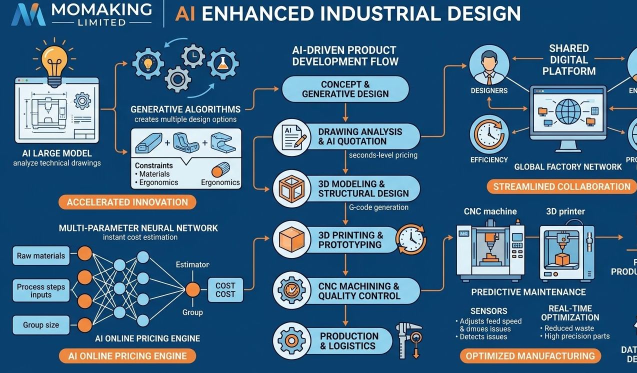 Momaking is a precision manufacturing enterprise empowered by AI large models, established in 2024. Rooted in the well-developed manufacturing ecosystem of Shenzhen, it has achieved a full-process innovation from drawing analysis to intelligent quotation and automated production with its self-developed AI large model with over a billion parameters for the machining industry. This setup shows how AI pulls the whole process together, from structure plans to CNC machining. Teams can then work across units. They keep data true and ideas fresh.